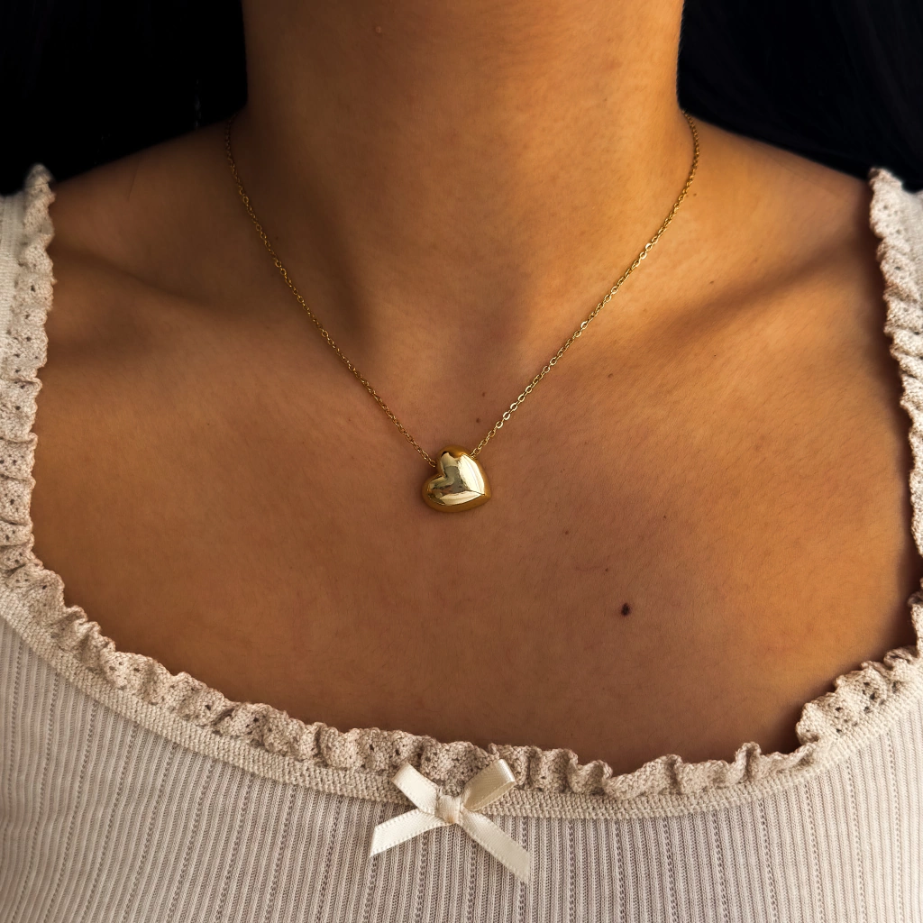 Conjunto cadena tiffany con dije corazón estilo inflado.