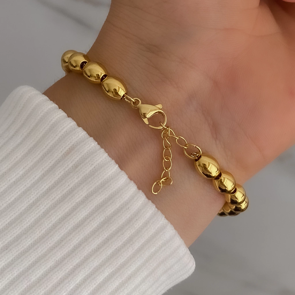 Pulsera con bolitas ovaladas sin fin de diseño liso.